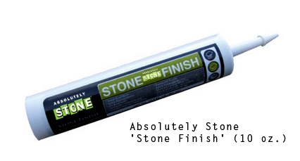 Absolutely Stone 'Stone Finish' (10 oz.) is designed to cover any necessary screw holes, repairs, or unwanted gaps. Stone Finish is an acrylic-latex textured colored caulking, that’s easy to use and easy to clean up. No fuss, no mess!